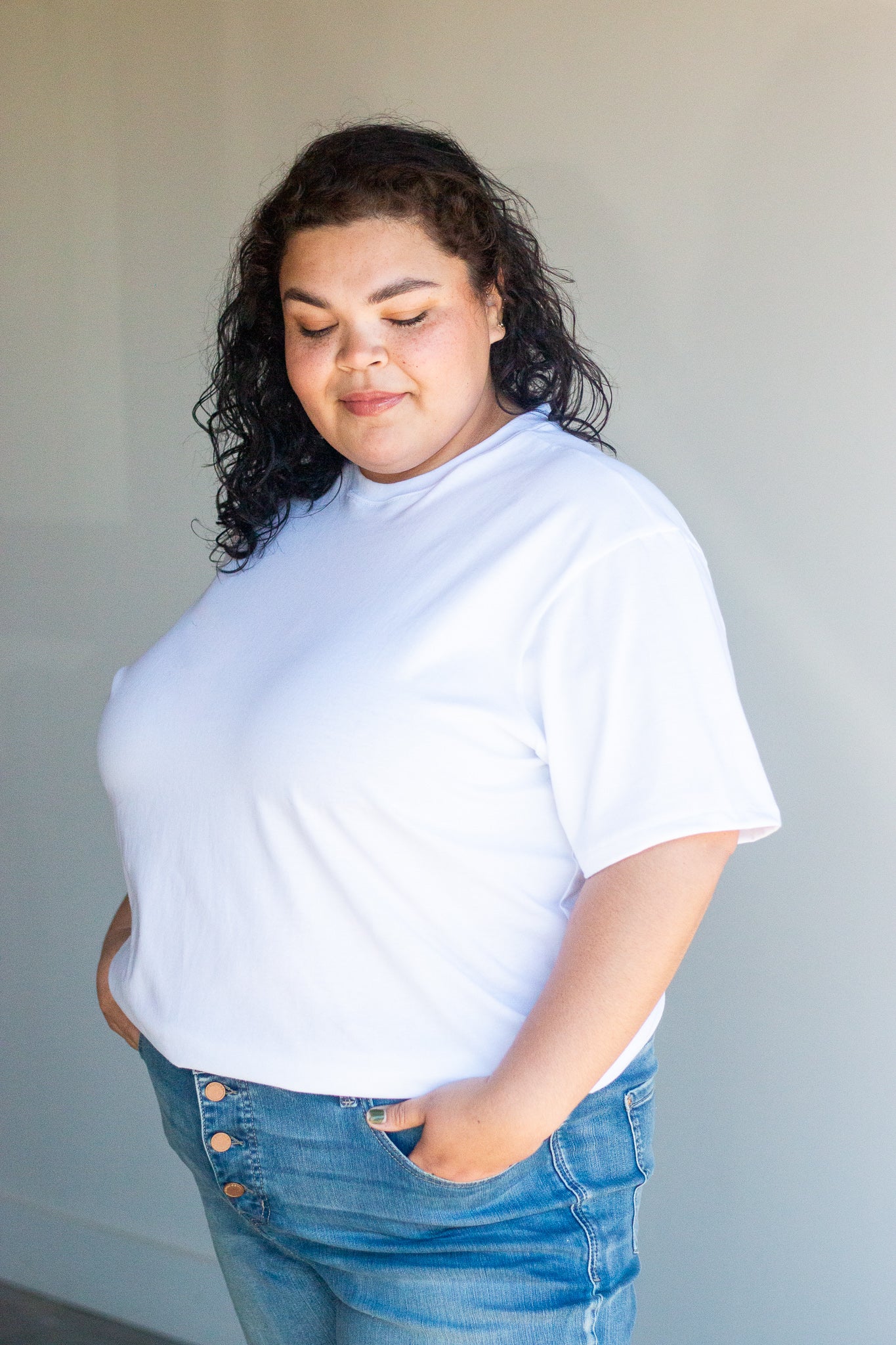The Classic is made from medium weight organic cotton and has a slightly thicker collar, not too thick, not too thin. Just that perfect classic tee look.