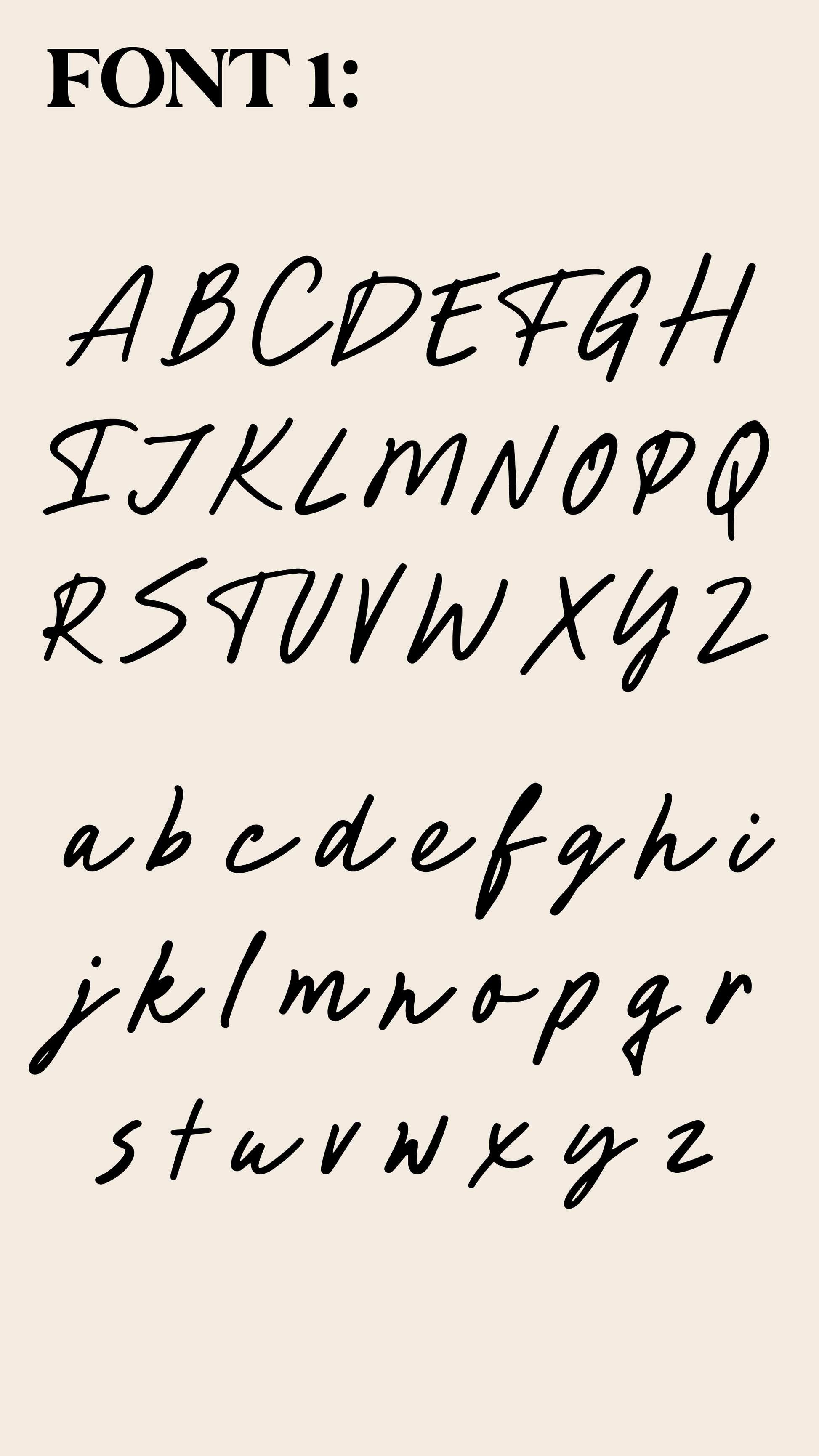 Choose your font, shown in images, and insert into Box 1, and type your characters in Box 2.