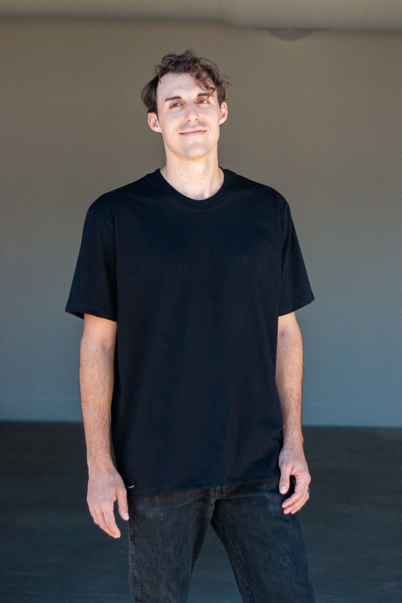 The Retro is made from a medium weight Organic Cotton. The collar width is taller, giving it that 90's retro feel you find in a good vintage t-shirt, without being so oversized its too much. You know what we're talking about.